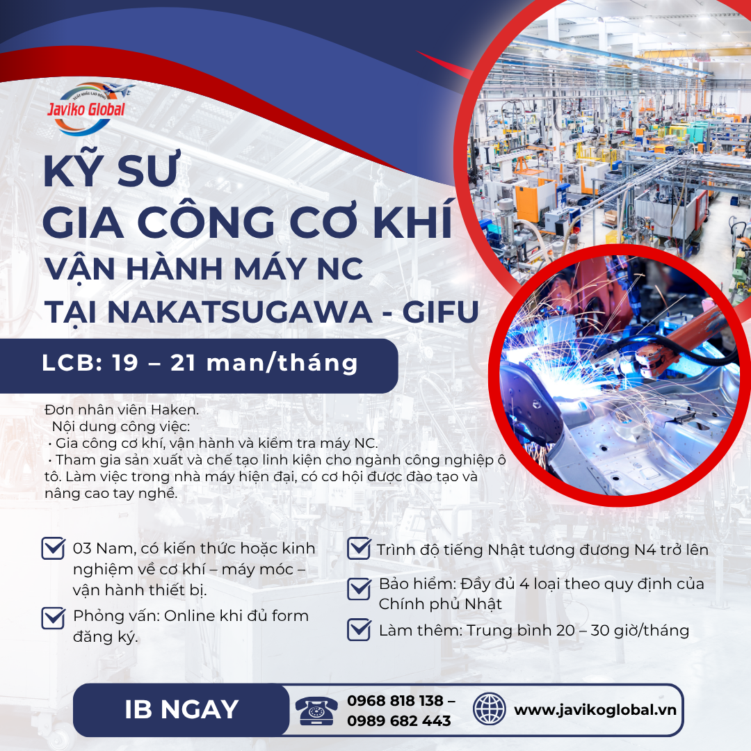 KỸ SƯ GIA CÔNG CƠ KHÍ – VẬN HÀNH MÁY NC TẠI GIFU