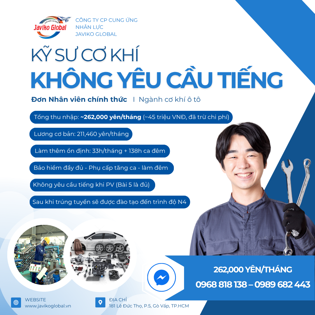 KỸ SƯ CƠ KHÍ Ô TÔ – KHÔNG YÊU CẦU TIẾNG NHẬT