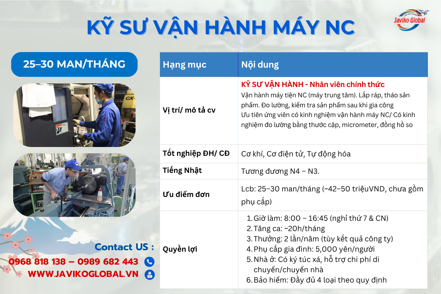 TUYỂN KỸ SƯ VẬN HÀNH MÁY NC TẠI MIE – CƠ HỘI LÀM VIỆC CHÍNH THỨC TẠI NHẬT BẢN