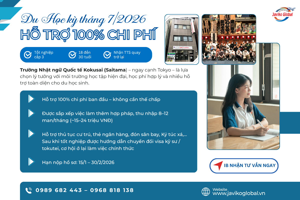 Du học Nhật Bản kỳ tháng 7/2026 – Trường Nhật ngữ Kokusai Nihongo Gakuin tại Tokyo