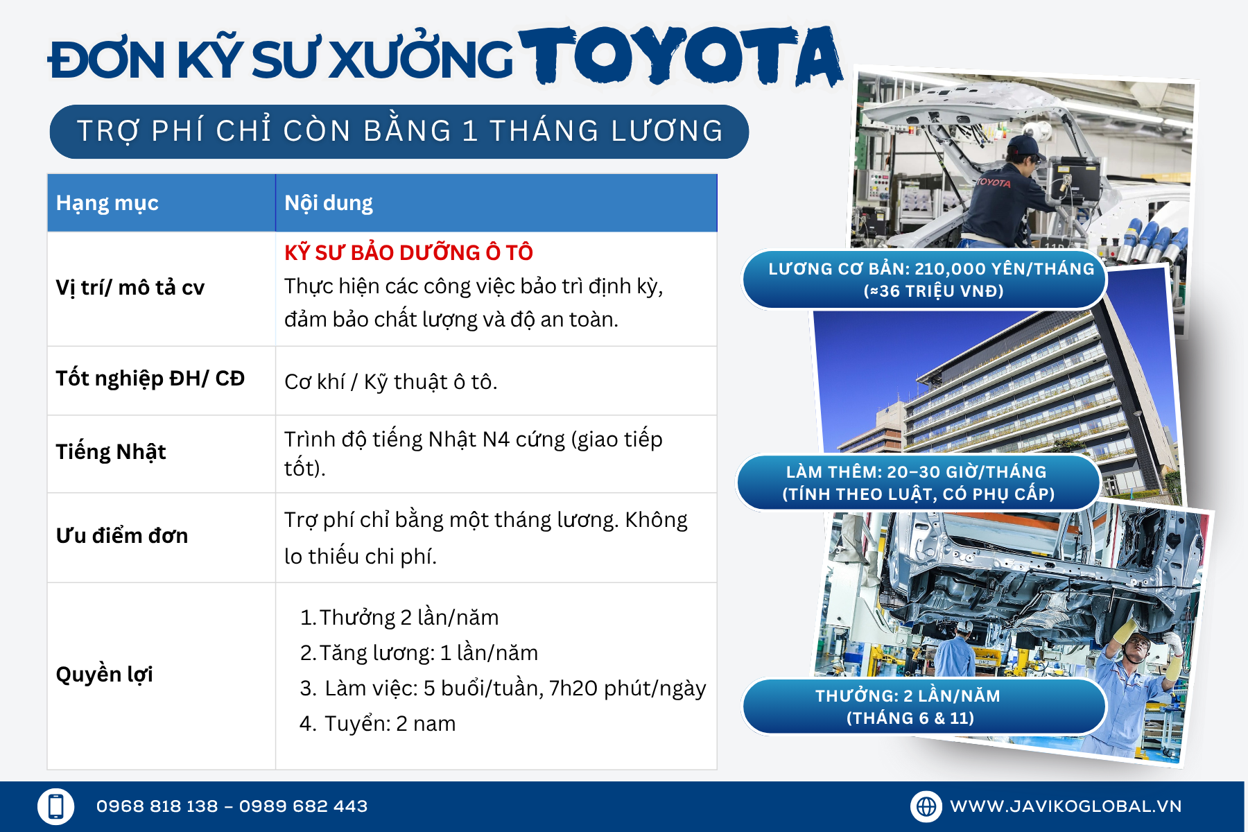 ĐƠN TRỢ PHÍ CHỈ CÒN BẰNG 1 THÁNG LƯƠNG- KỸ SƯ TOYOTA AICHI NHẬT BẢN