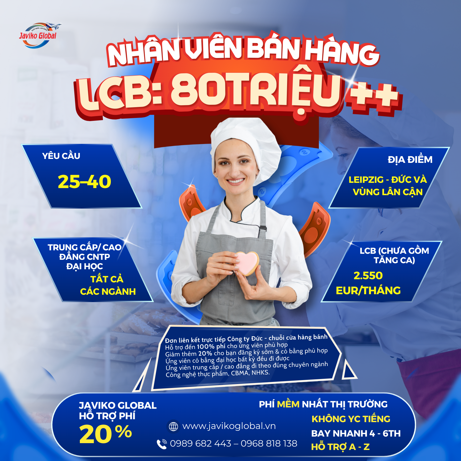 [ĐỨC] TUYỂN DỤNG NHÂN VIÊN TƯ VẤN – BÁN HÀNG TIỆM BÁNH TẠI LEIPZIG – LƯƠNG CƠ BẢN 2.550 EUR (~80 triệu VND)