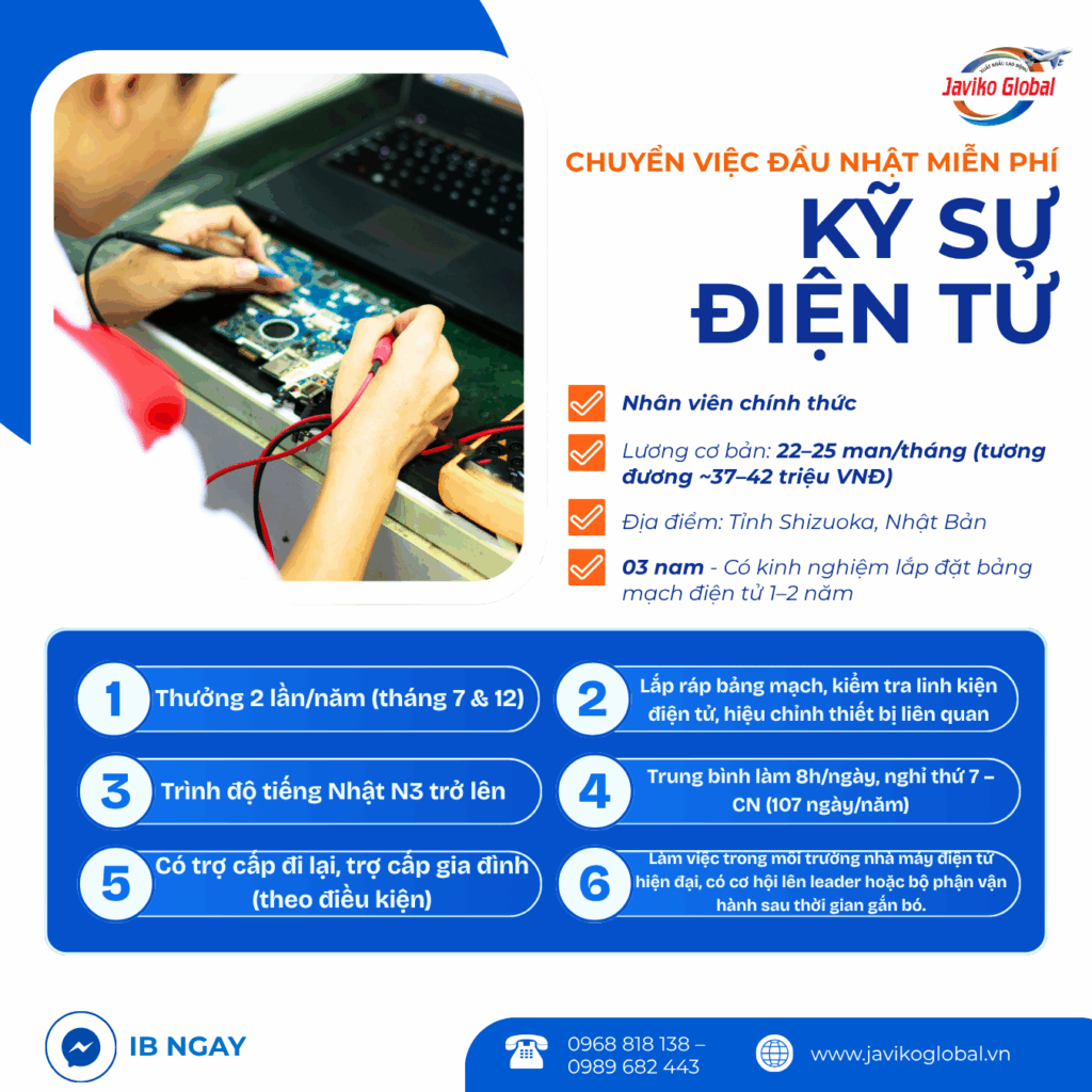 Bạn là kỹ sư cơ khí, cơ điện tử hay tự động hóa đang tìm kiếm cơ hội phát triển sự nghiệp tại Nhật Bản?Javiko Global mang đến cho bạn đơn tuyển kỹ sư vận hành máy NC (máy trung tâm) với mức lương hấp dẫn, môi trường chuyên nghiệp và chế độ phúc lợi […]